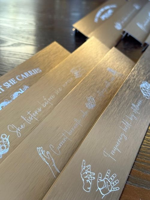 - Laser-engraved brass poem bars (detachable)