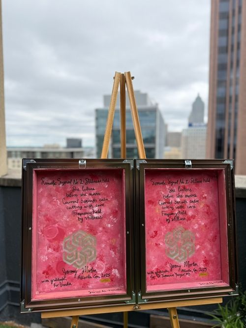 This work emerged from the quiet beneath injury, during a season when movement betrayed me and stillness became the only truth I could trust. With trembling hands, I began to paint what could not be moved. And in that surrender, I found signal.