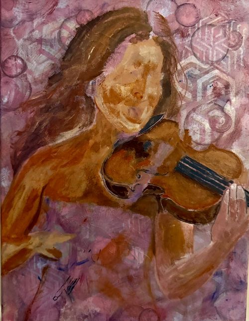 Each brushstroke is an exhale. The texture, a soft insistence. Watercolor bleeds into acrylic like a memory bleeding into the present, where time folds inward and stillness becomes a sanctuary.
